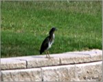 Small stocky wading bird, dark with long yellowish legs, long dark pointed bill, long neck often pulled in tight to body. Their legs and neck are long but shorter than most herons.