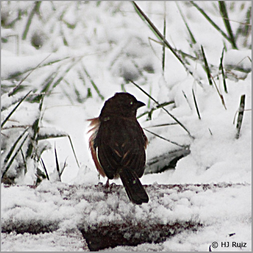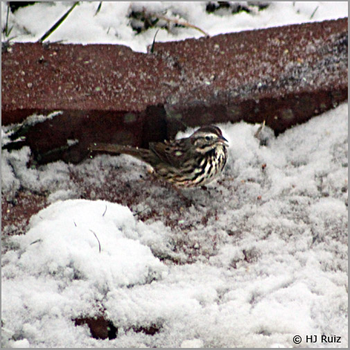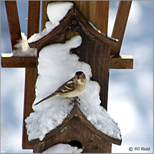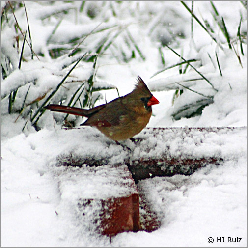 Hey! Guess what? Yesterday the area where I live got approximately 4 to 5 inches of snow! We rarely get any snow at all and you can imagine how surprised we were to see accumulations. Today is so beautiful since we have sunshine and blue skies. I had a good time yesterday observing the birds and taking pictures also. I’m posting some of them now.