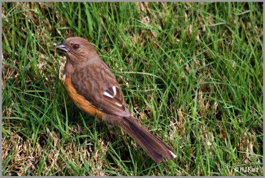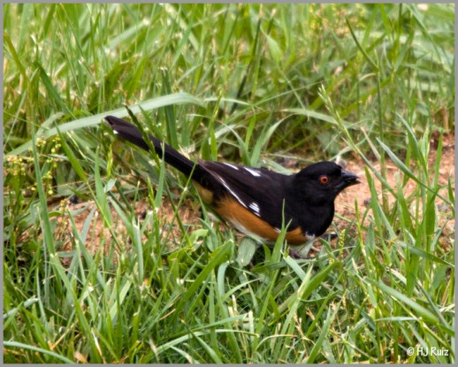 I got a couple of Eastern Towhees that must have a nest nearby somewhere in my backyard, I see this couple almost daily and are inseparable, these birds are a poster for Valentine Day! 🙂 No kidding! They go every where together, if you happen to see either one somewhere in the backyard, just look around, not very far and you’ll notice a long tail sticking out of the grass flashing the white feathers. Just amuses me to observe their moves.