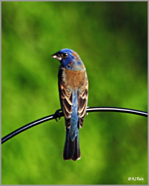 Today I’m going to talk about the Blue Grosbeak and show you a picture of a young one. The blue grosbeaks are very beautiful birds, their brilliant colors standout in contrast to the green vegetation. The very first time I saw one I was elated, I had never seen one bird with such brilliance in my life, it’s not the same when you see a photo in a book, seeing the bird alive was a great experience for me.