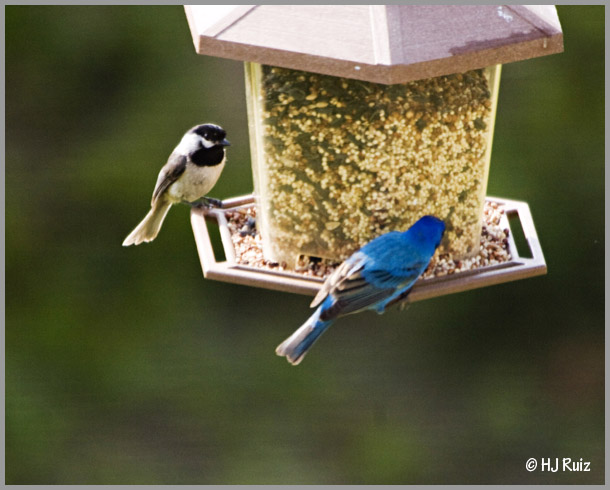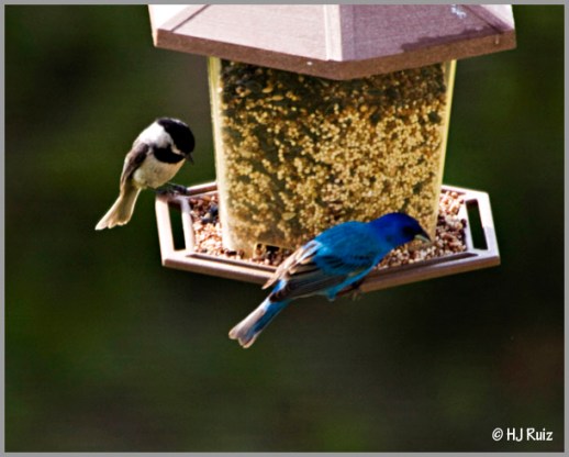It was very nice to see the Indigo Bunting again at my feeders, not only that it mingle with another small bird, the Carolina Chickadee. The photos I’m posting serves as a comparison of size. The Indigo Bunting is like a small version of the Blue Grosbeak.