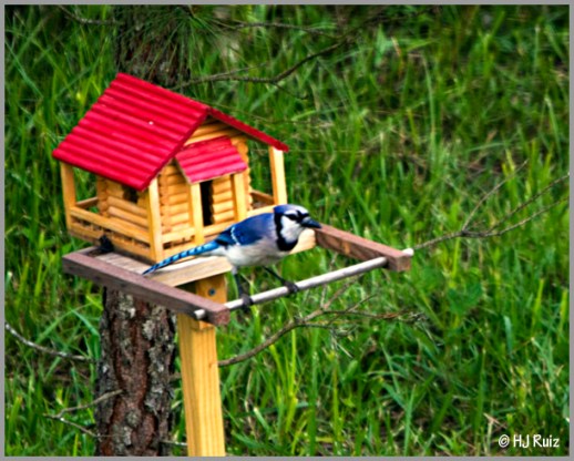 Now that I’m feeling a lot better of my back, I’ve been shooting more pictures and I’ve seen a lot of bird activity in the backyard. Today I bring you a Blue Jay that hung around for long while, checking all the area. He even got into a confrontation with a Northern Mockingbird.