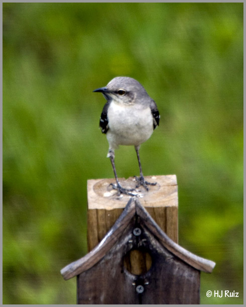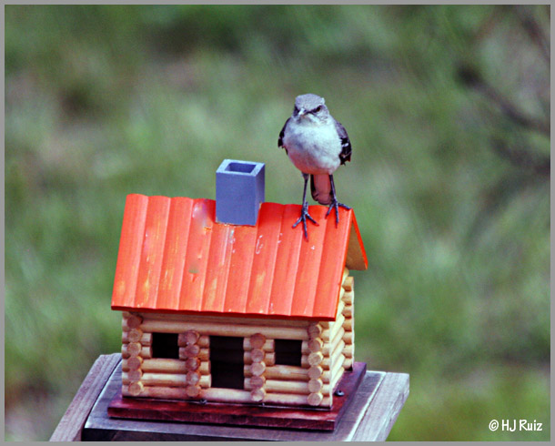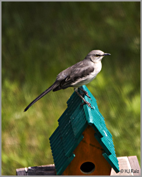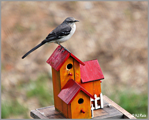It was several weeks that I didn’t see any Mockingbirds. Today I felt inspired by the sighting and will be posting a group of 4 photos for you. I picked these because Mockingbirds love to perch on top of birds houses.