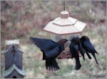 The flock was approximately a couple of hundreds birds. Some stayed perched on the tree branches and other landed near the feeders.