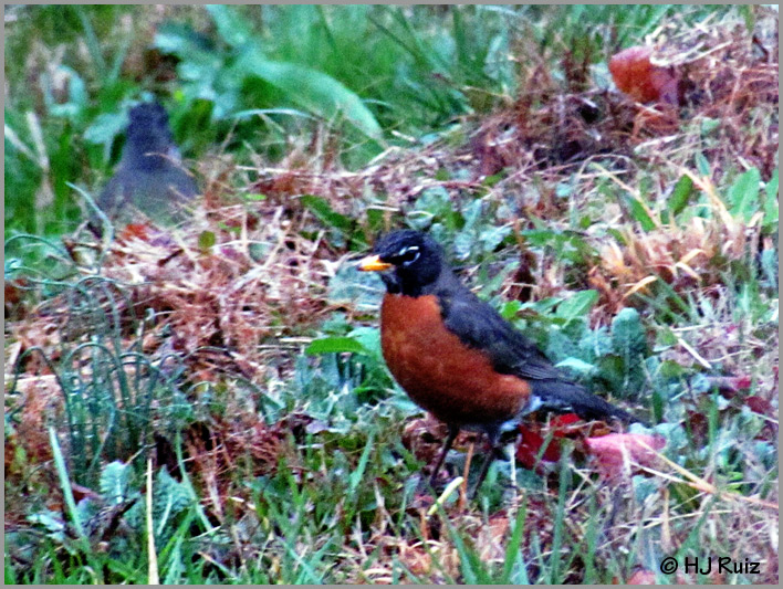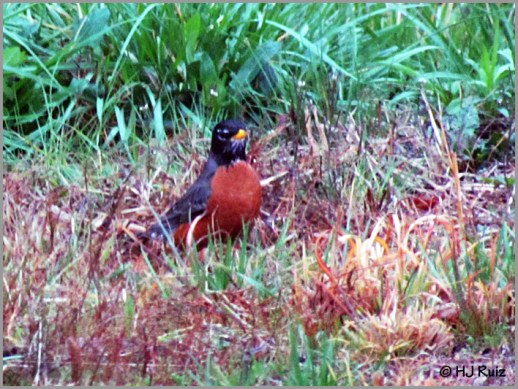 I believe that at least twenty individuals ran from one place to another pocking the wet ground. Most birds were wet for the obvious reasons. I just wished there was more light, it was gray and dark. Despite the circumstances I was able to get a few shots of the robins, images that I’m posting today.