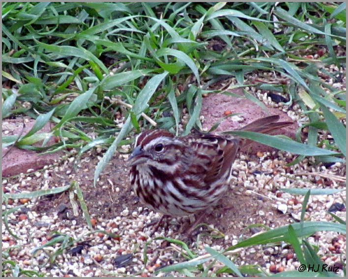 Song sparrows are the birds having the hardest time to get the seed, of course they are eating but they put up a greater unnecessary effort for it, so I’ll help them!