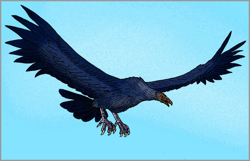 As with nearly all extinct species, not much can be known about the Giant Teratorn’s behaviour. From the size and structure of its wings it is inferred that A. magnificens flew mainly by soaring, using flapping flight only during short periods. It is probable that it used thermal currents as well. It has been estimated that the minimal velocity for the wing of A. magnificens is about 11 m/s or 40 km/h. Especially for takeoff, it would have depended on the wind, as although its legs were strong enough to provide it with a running or jumping start, the wings were simply too long to flap effectively until the bird was some meters off the ground. However, skeletal evidence suggests that its breast muscles were not powerful enough for wing flapping for extended periods. Argentavis may have used mountain slopes and headwinds to take off, and probably could manage to do so from even gently sloping terrain with little effort. It may have flown and lived much like the modern Andean condor, scanning large areas of land from aloft for carrion. The climate of the Andean foothills in Argentina during the late Miocene was warmer and drier than today, which would have further aided the bird in staying aloft atop thermal updrafts.