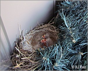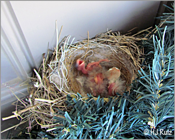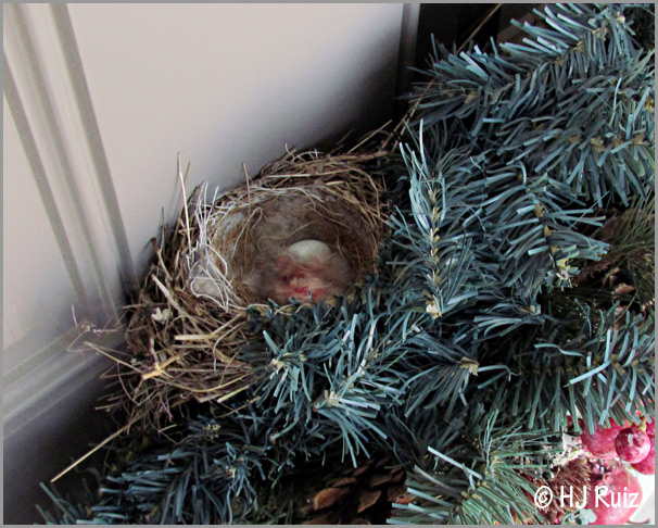 Do you remember the House Finches nest that is in my neighbor’s wreath? (Blog April 14th)