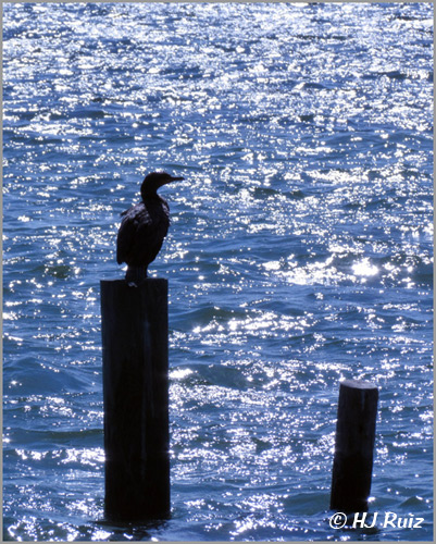 - A Neotropic Cormorant, basking on the sun on a pole at the inlet side.