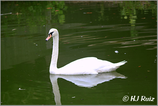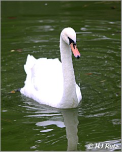 This is a species of swan, and thus a member of the duck, goose and swan family Anatidae. It is native to much of Europe and Asia, and (as a rare winter visitor) the far north of Africa. It is also an introduced species in North America, Australasia and southern Africa. The name ‘mute’ derives from it being less vocal than other swan species. Measuring 125 to 170 centimetres (49 to 67 in) in length, this large swan is wholly white in plumage with an orange bill bordered with black. It is recognisable by its pronounced knob atop the bill.