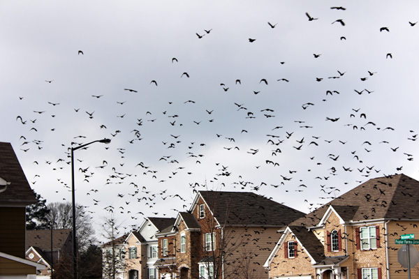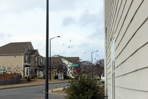 You should have seen it in person, birds all over and flying low, others on the ground blanketing all the lawns.( Do you remember the movie “The Birds”?