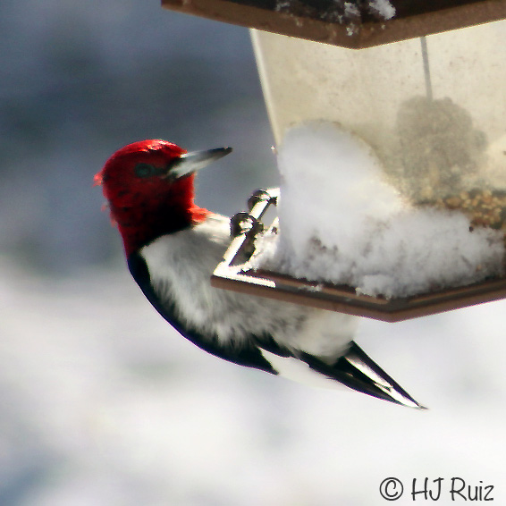 I amaze myself when I observe birds how they handle a snowy day in order to eat their daily food and sustain survival through the winter days. I can see how the dig the snow and ice in order to get some grains. While at the feeders they clean up and dust off the snow or break any ice that covers the seeds and their usual feeding habits change to winter mode. They ingeniously adapt to the current weather conditions and handle themselves very well!