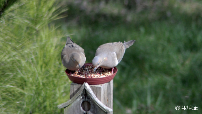 The sequence of pictures is a short version of the courtship of these Mourning Doves. I find it very romantic  and inspirational toward a kind of love between birds.