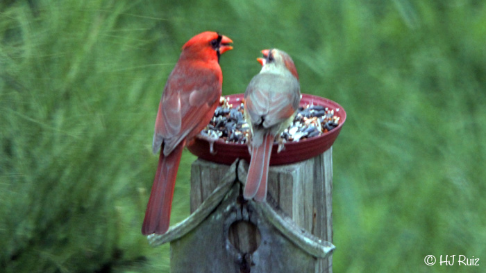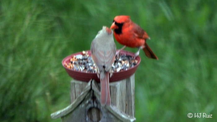 The cycle of life continues unstoppable! Nature’s mechanism works full time to fulfill unprinted laws embedded in our genes for all living creatures in our world. We do it, birds do it, insects do it, plants do it. We all seek the continuation of our existense. That’s the way is has been for many milenia. Why I’m explaining this? Because I have been touched again by a new couple of Northern Cardinals that were acting very romantically and I couldn’t just pass it up. I had to tell you about them, not only that, I bring you some photos to illustrate my story.