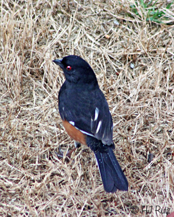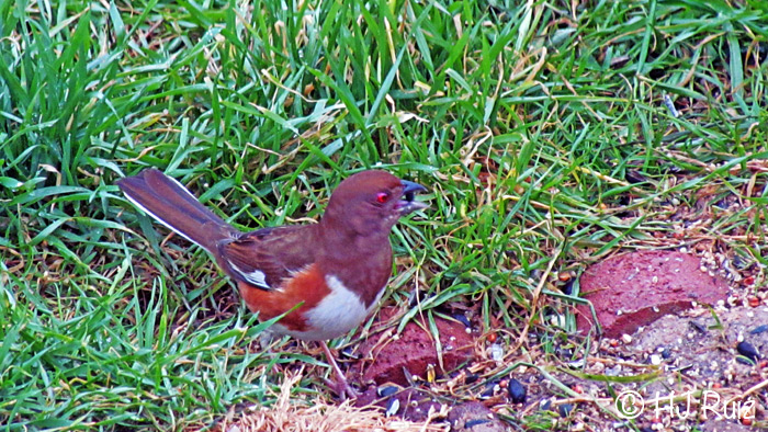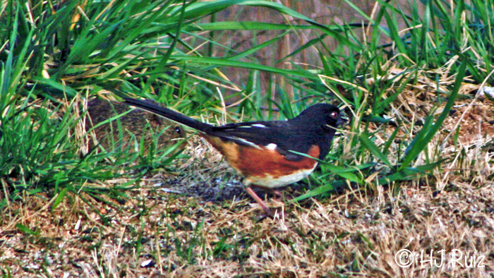 Eastern Towhees have been in my backyard from day one. They are active birds, ground feeders, they live an independent life around the area where they have their nests, deep into the bushes. Male and female once they have built a nest as a couple, they go everywhere together.