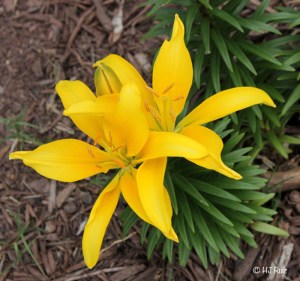 My wife Lucy had planted some Dark Yellow Lilies and I noticed one the buds had opened already and shows a gorgeous flower! I got some pictures of it. While I was shooting this flower I saw the biggest Yellow Jacket wasp walking around the Lillie plant. I shot a couple of pictures of the insect too.