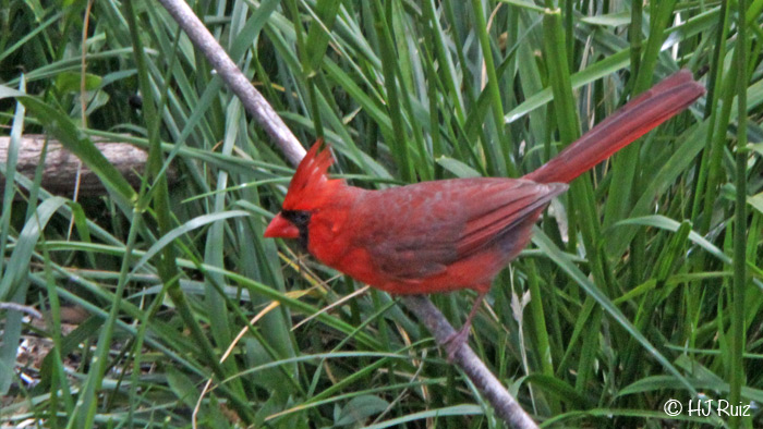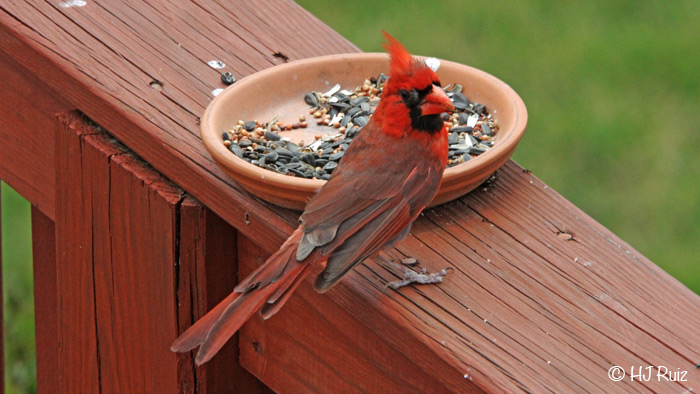 Another N. Cardinal (M) Looking for seeds near feeder.
