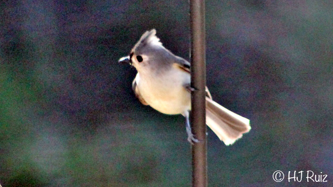 The Tufted Titmouse is a pretty bird that looks like a drawing animation or a toy bird. Fast flyer and not so easy to photograph. I’ve observed this bird’s habits and one of them is that they repeat their feeding techniques to the letter, what I’m trying to say is: