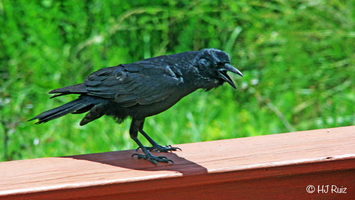 Many times these American Crows perch atop a large oak tree a hundred yards from my house by the creek and you can hear them calling very loudly to the top of their lungs!