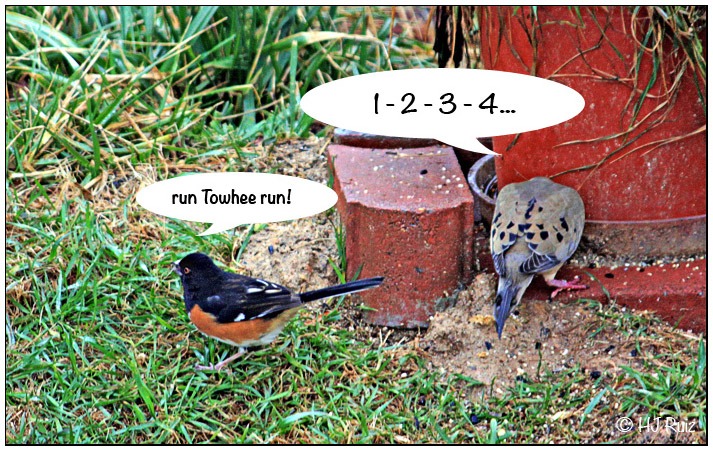 Oh how I’d love to know what games the mourning doves and house finches are playing right now on my back patio………..lol