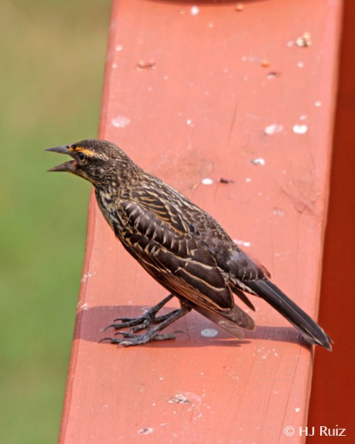 Monday was a day that we got a respite from the scorching heat for about four hours, although did not rain the sky was kind of gray and a bit breezy. You have no idea the amount of birds that began to appear looking for food! It was morning yet and the emptied all feeders, I had to refill them again. I set my camera and started shooting pictures, that’s when I noticed that many of the birds were just immatures and juveniles. It was so exhilarating seeing the little ones getting their own food and you could also see their parents nearby observing.