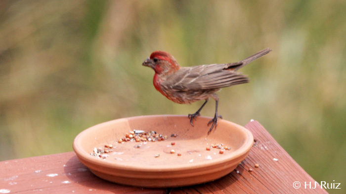 Today I’ll be referring to the House Finches, they are nice birds that they mind their own business, they have their disputes but among themselves and not with other species. I have observed that their sense of responsibility as couples and parents work instinctively well. They are good providers and tend their nests equally, couples are most of times together and hardly separate from each other.