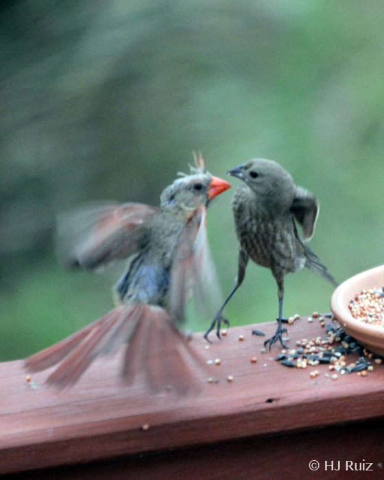 Taking in consideration the only variable this summer which are the high temperatures in the 3 digits. After a period of time observing  birds behavior while in my backyard, I’ve come to the conclusion that the heat wave that is affecting the country’s southern states particularly, is also causing an elevated case of aggressive behavior in most species of birds. We know and is a fact that human behavior tends to an increase of crime  and violence in hot summers. I haven’t read the latest stats in this subject but I can only imagine since we are having a very hot summer so far.