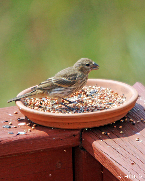 House Finches are getting more abundant around my backyard, the fledgelings are juveniles now and they’re all over at the feeders and flying around at home (My backyard).