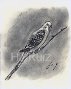“Budgie” Complete drawing, charcoal on drawing paper, 6×8
