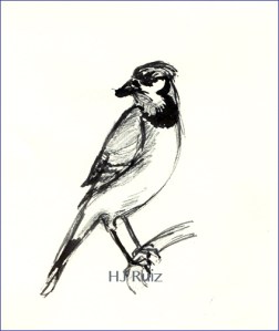 “Blue Jay” Black ink, bamboo reed pen, 6×8 on drawing paper