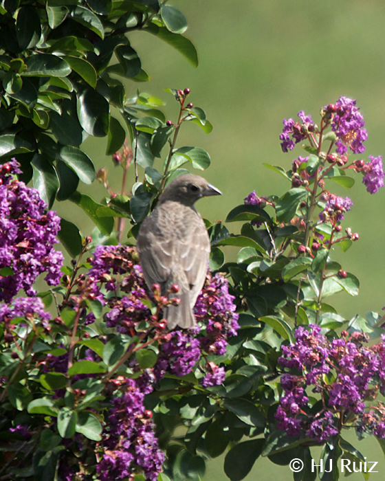 Brown-headed Cowbird (F) perched on my Crape Myrtle tree