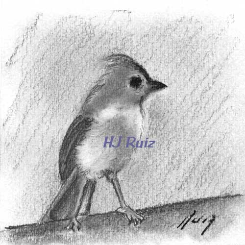“Tufted Titmouse” Charcoal and conte, on drawing paper, 5×5″, framed