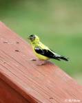 - American Goldfinch eats seeds from dish undisturbed