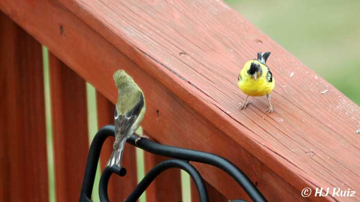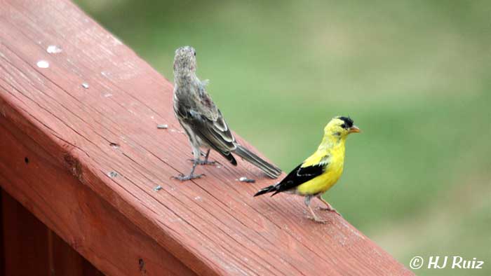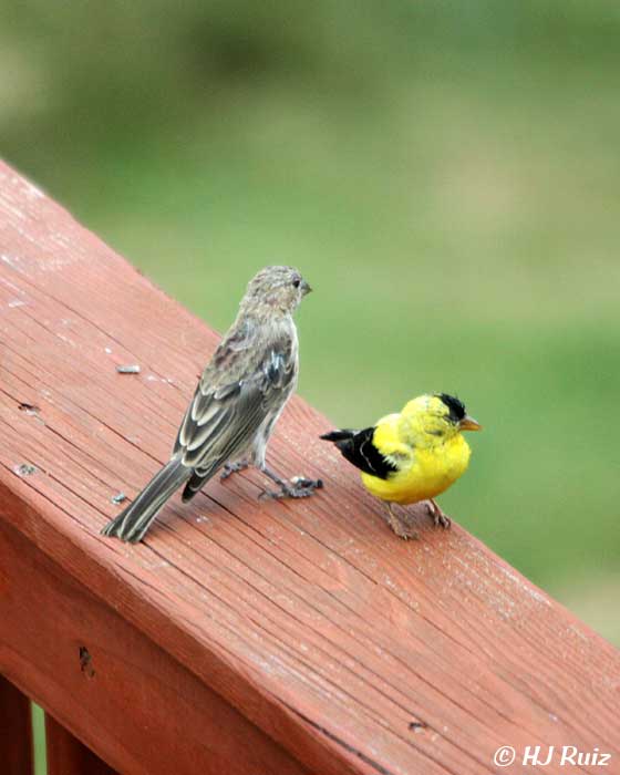 - A House Finch stands guard next to A.Goldfinch and both make calls