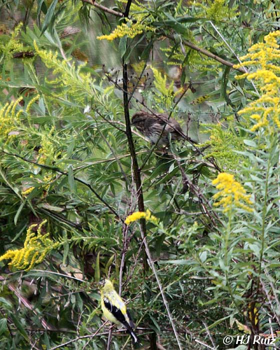 - Song Sparrow stands guard of A. Goldfinch for a while