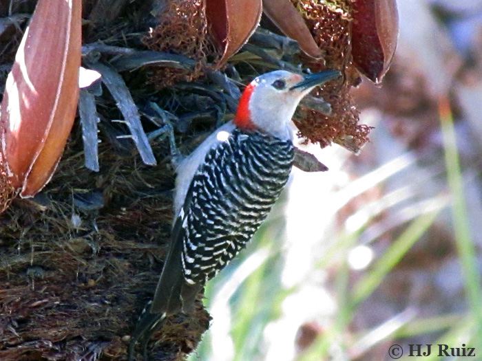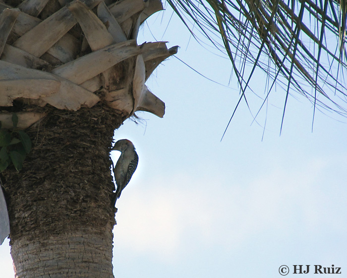 This bird has a favorite tree to look for insects and other creepy crawlers: High on the palm trees. Knowing their preference I always head for the tallest palm trees and look all around the trunk near the top. I do this because they creep around the trunk when they see someone approach the tree in other words they hide from you. I have noticed that most of the different types of woodpeckers use that same strategy to avoid intruders.