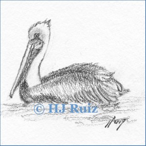 “Brown Pelican” – Sketch – Compressed graphite on drawing paper, 5×5″
