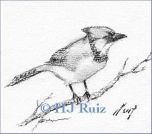 “Blue Jay” – Sketch – Charcoal on drawing paper, 5×5″