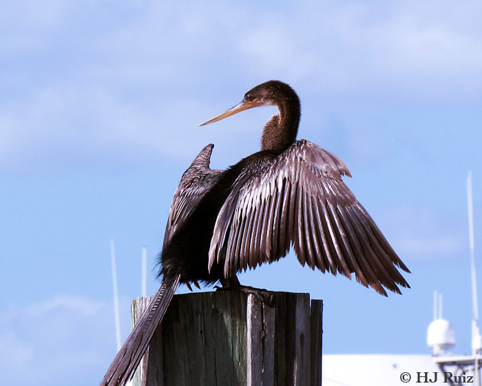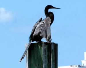The Anhinga – Latin name (Anhinga anhinga), sometimes called Snakebird, Darter, American Darter, or Water Turkey, is a water bird of the warmer parts of the Americas. The word anhingacomes from the Brazilian Tupi language and means devil bird or snake bird.