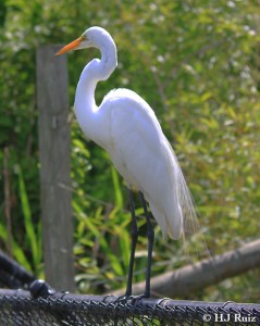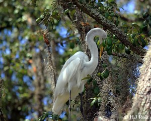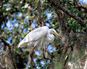 The Great Egret, also known as Great White Egret, Common Egret, Large Egret or Great White Heron is a large, widely-distributed egret. Distributed across most of the tropical and warmer temperate regions of the world, in southern Europe it is rather localized. In North America it is more widely distributed, and it is ubiquitous across the Sun Belt of the United States and in the rainforests of South America.