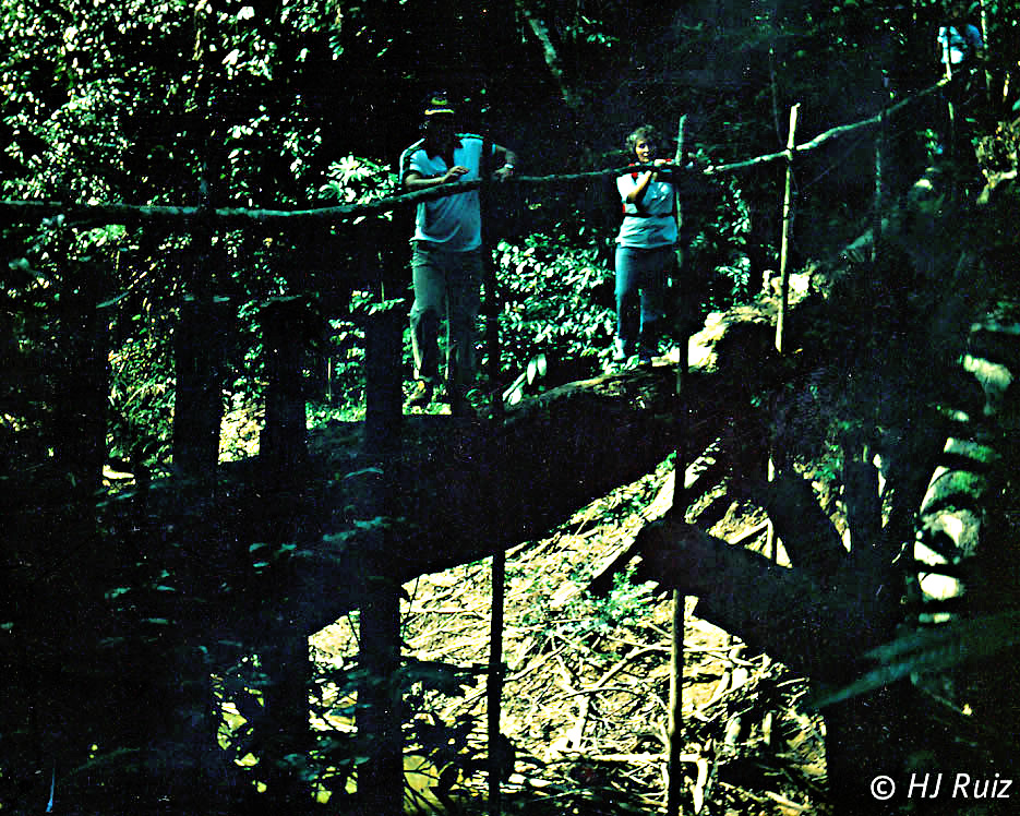 H.J. and wife Lucy crossing a creek.