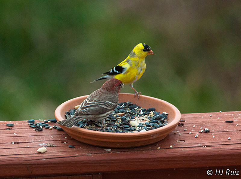 I have the honor to be joined for dinner by a couple of gentlemen, they are Mr. House Finch and Mr. American Goldfinch. Of course we should disregard their table manners, buy the way they were immersed into a discussion by Mr. House Finch regarding the Real Estate situation and the poor handling of the Banks and Financial Lenders point that was not well received by Mr. American Goldfinch being a Lender himself!
