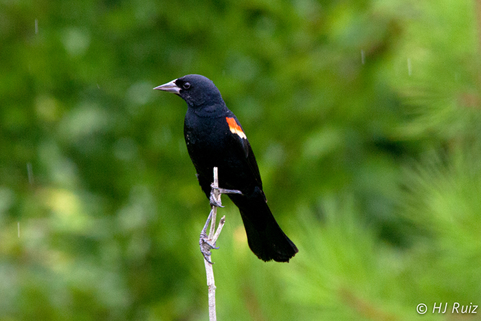 Red-winged Blackbird (M) almost unaffected by rain