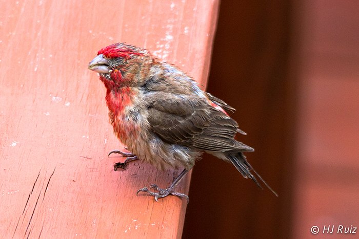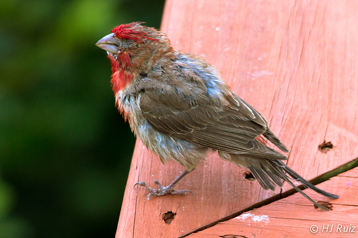 Last Monday I shot some photos of a young House Finch that appears to have been attacked and injured, resulting on a lost of an eye and part of his tail feathers. He was able to fly and there was nothing that I could do to help him.