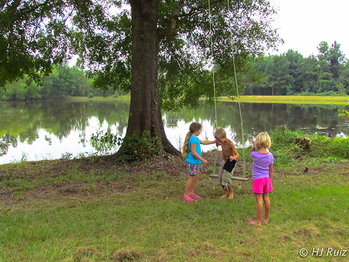 Kids playing with rope swing