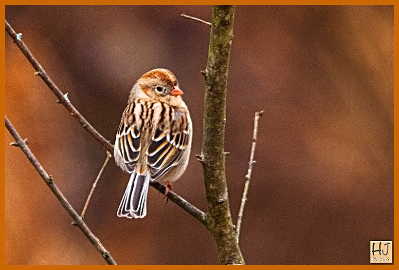 I’m reading this backwards but it’s a beautiful Field Sparrow. One of my Favorite Birds. Thanks for the great photo!