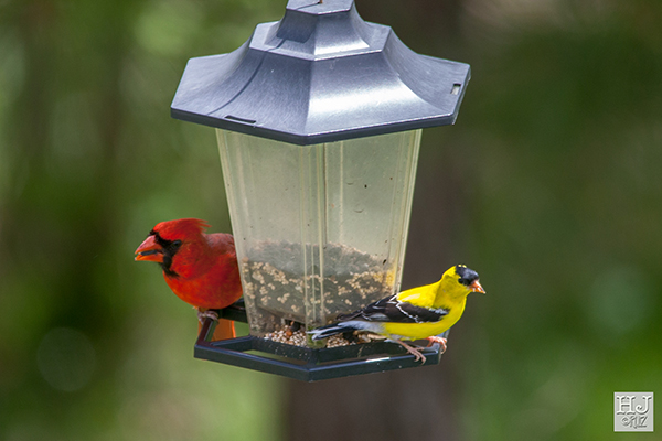 Northern Cardinal (M) and American Goldfinch (M)