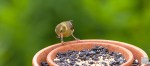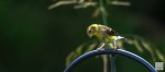 Once in a while, when I least expect it… boom! A couple of American Goldfinches show up for a short but delightful visit! They are very nice looking birds, their plumages are bright and virtually hard to miss in contrast with the green surrounding backyard.