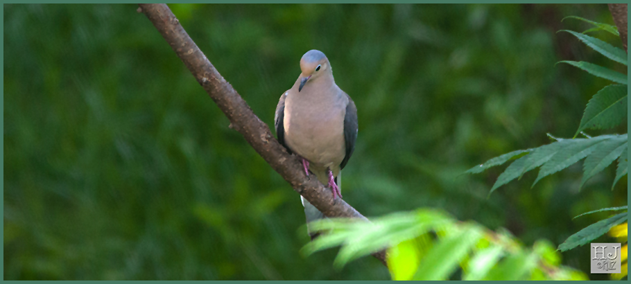 Mourning Doves are a fixture in my backyard.  They are strong, hardy birds very common almost in old kinds of environment. They have adapted to living in urban areas very well. These birds have a voracious appetite, they could sit by a feeder and eat until all seeds are gone… that simple! They may look pacific and innocent but they have a lot of aggressiveness within their genes. They fight among themselves or with other birds.  But they also are a preferred staple for predators such as Hawks, cats, snakes, etc.