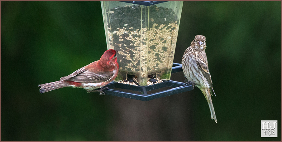 It’s rare to see a House Finch by itself in my backyard, usually and not too far you can spot the mate or other members of the family. To me, the House finches are the epitome of the formal family and placing second the Carolina Chickadee.